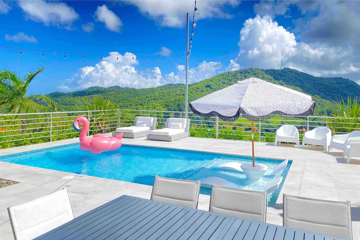 Villa de luxe | Piscine privée, vue imprenable et emplacement privilégié Évadez-vous au paradis 4BR/2.5BA communauté fermée. Parfait pour les familles et les groupes Piscine 🏝 privée et terrasse ensoleillée, baignade, salon ou détente dans des hamacs avec vue panoramique sur la montagne et la mer ⚡ Entièrement équipé, générateur, réserve d'eau, Wi-Fi rapide et climatisation dans chaque chambre Oasis 🍹 extérieure : barbecue, salon de restauration et piscine conçus pour des couchers de soleil inoubliables 🌴 Plages, forêt d'El Yunque, baie bioluminescente, catamarans, cascades, VTT et gastronomie