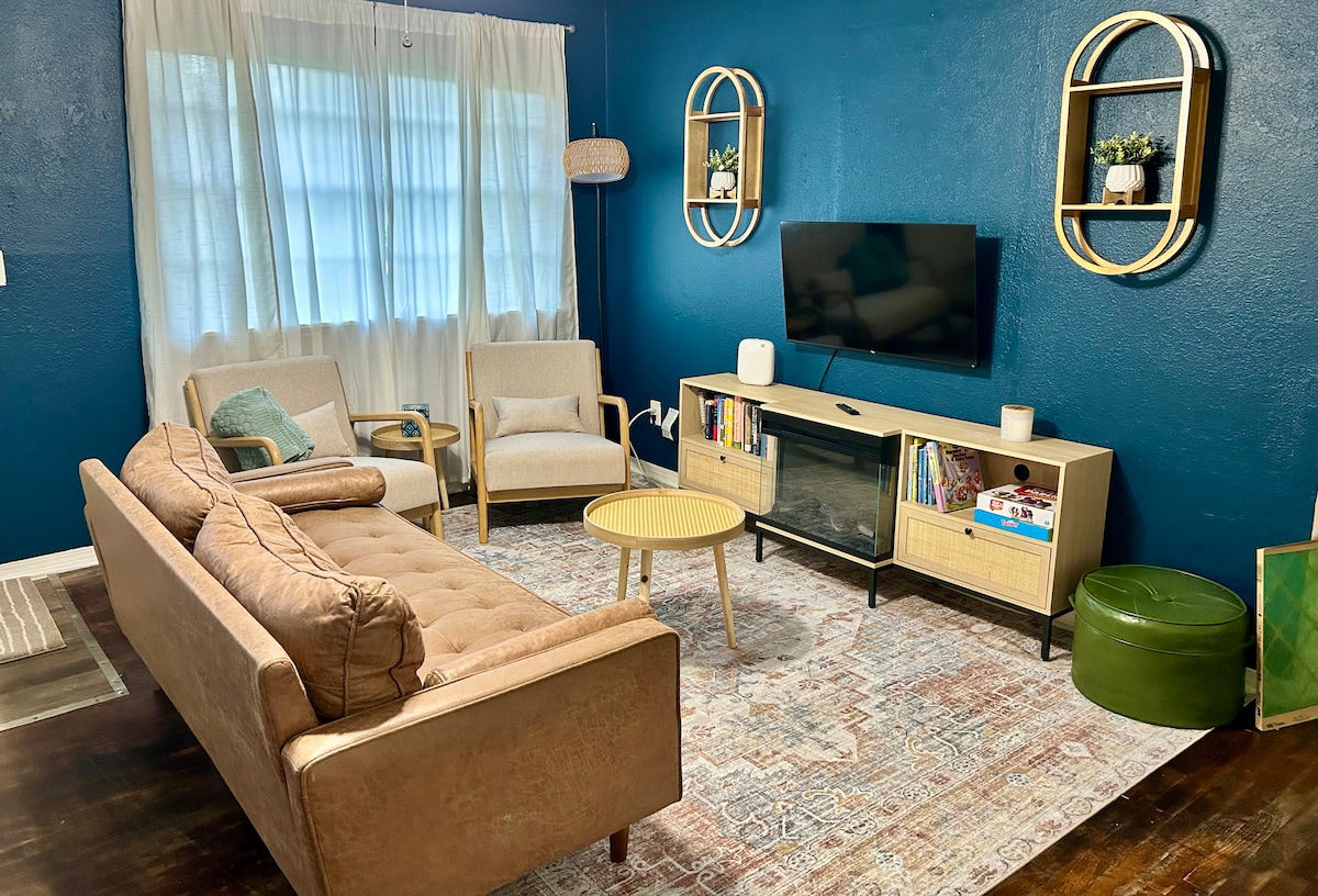 Duplex frais et lumineux 1 chambre/1 salle de bain juste à côté de l'I-49, avec accès par l'arrière-cour au sentier de la ville et à seulement 10 minutes du centre-ville/UA, mais niché dans un cadre paisible. Situé dans un quartier calme entièrement en duplex, à environ 3 miles du centre-ville et du Razorback Stadium, à seulement quelques minutes en Uber. Salon ouvert spacieux avec télévision connectée et cuisine. Il s'agit d'une maison de 3 chambres avec 1 chambre pour les voyageurs (les deux autres sont des rangements verrouillés). Commencez votre journée par une promenade sur les sentiers ou prenez l'I-49 pour explorer les Ozarks !