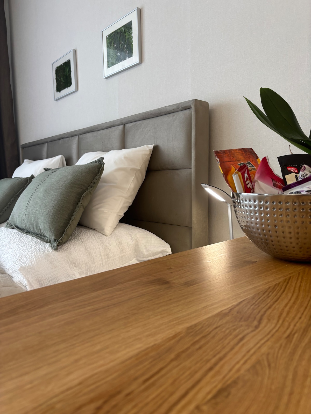 ***Super studio paisible et confortable avec tout ce dont vous avez besoin pour un repos paisible ! L'appartement est situé au quatrième étage d'un bel immeuble d'appartements moderne nouvellement construit. La maison d'une chambre avec balcon de 33 m2+ 9 m2 est équipée de tout ce dont vous avez besoin pour vous détendre ! Il y a un parking de surface gratuit avec une barrière, qu'ils peuvent utiliser sans frais. Il y a un cabinet médical privé et une pharmacie au rez-de-chaussée du bâtiment, une cour paysagée est également disponible. Numéro d'enregistrement : MA25111352