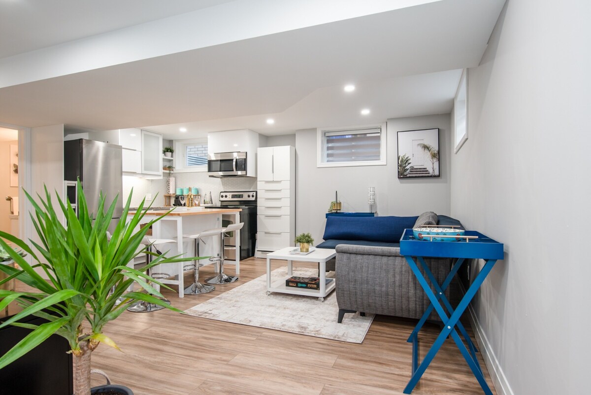 Découvrez le Carlton, Elora. Une retraite élégante à quelques pas des charmantes boutiques du village, de la salle de mariage et des délicieux restaurants. Cet appartement de niveau inférieur situé au centre (sous notre maison familiale) est entièrement privé et parfait pour les couples. Des voyageurs supplémentaires peuvent être ajoutés moyennant des frais. Explorez la beauté pittoresque des gorges d'Elora et l'art local, puis revenez vous détendre dans le jacuzzi. Découvrez le meilleur d'Elora dans un espace conçu pour la détente et le plaisir. Nous sommes ravis de vous accueillir !