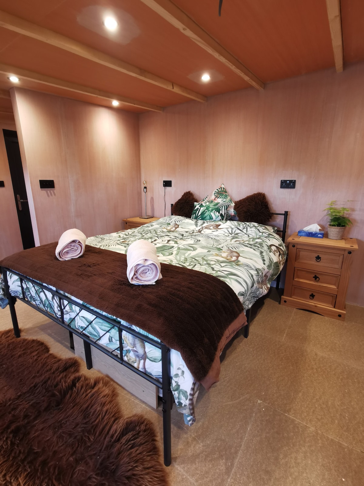 Wake up to panoramic views across rolling hills in this beautifully designed studio, perfect for a romantic retreat or peaceful escape. Sink into a luxury king-size bed underneath a vaulted ceiling, with hotel-quality bedding, and enjoy thoughtful touches and bespoke features throughout. Set in the heart of Flintshire, our rural hideaway offers the best of both worlds: peaceful countryside with quick access to historic Chester, Wrexham, the market town of Mold, and the wild beauty of Snowdonia.