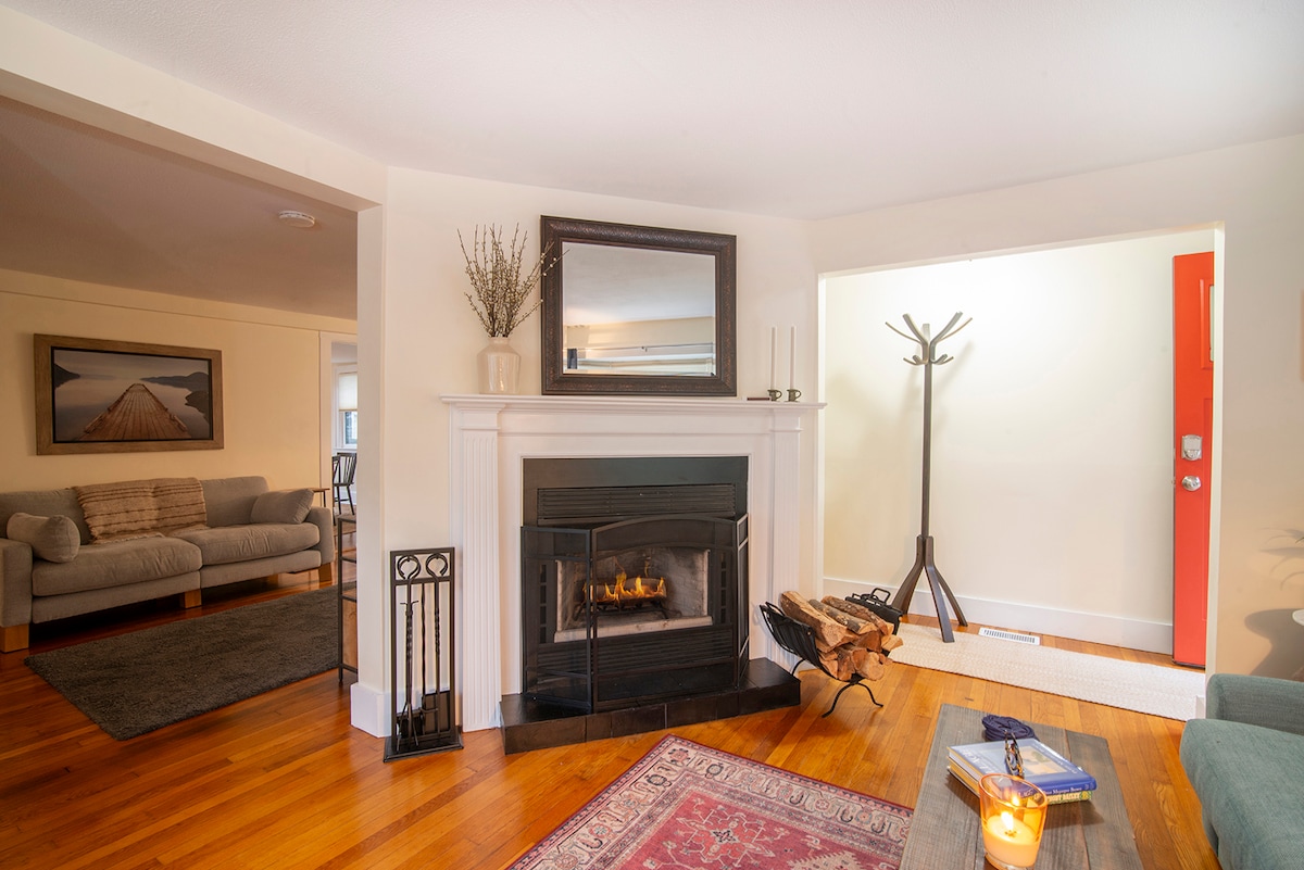 Ce chalet récemment rénové se trouve au sommet d'une voie tranquille avec une vue imprenable sur la prairie. Un seul niveau. Deux chambres pour quatre personnes (lit queen size et deux lits jumeaux) ; nouvelle cuisine bien équipée et une salle de bain, salon ouvert, terrasse et patio. Lumineux et spacieux. Cheminée fonctionnelle, climatisation centrale ; lave-linge/sèche-linge ; télévision par câble étendue et Wi-Fi ; parking hors rue pour deux voitures. Marché/épicerie à proximité ; agréable promenade (à moins d'un mile du centre de Mystic) - restaurants, boutiques, marinas, etc. Près de la gare Amtrak. Superbe retraite !