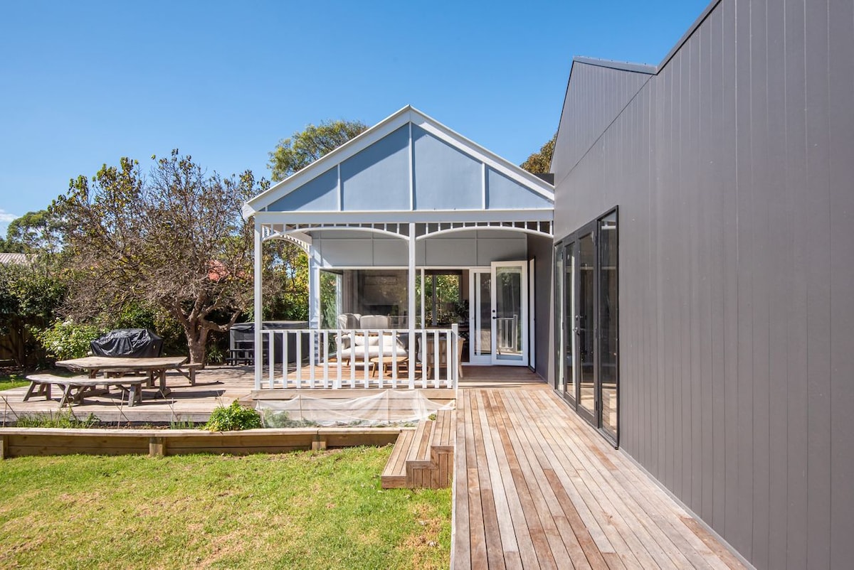 If you like your holiday homes relaxed, charming and within strolling distance of a good coffee (or something stronger), welcome to The Good Place. Tucked down a quiet dirt road lined with towering pines, our little cottage is a 5 minute walk to Balnarring village; home to top notch eats, craft cocktails, a brewery, and boutiques. Here for the seaside? You’re a 3 minute drive from Balnarring Beach.