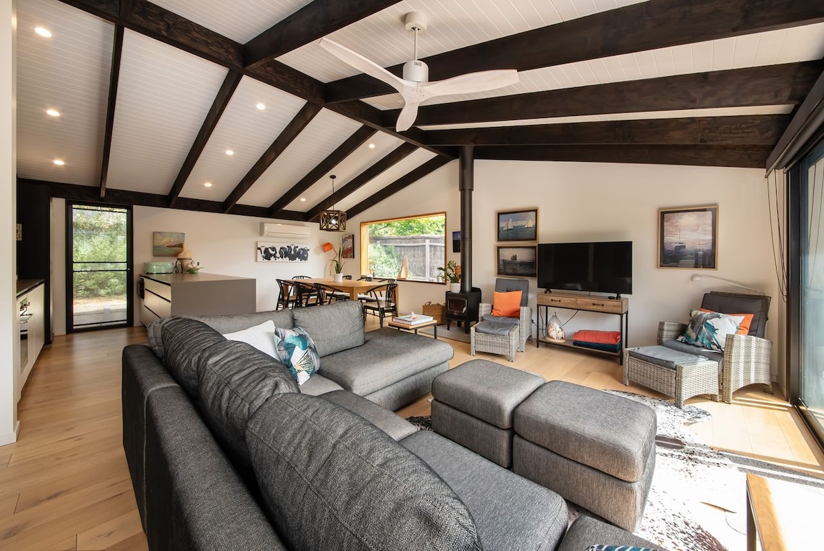 Poet's Corner House sur Phillip Island est une retraite privée alliant confort moderne et charme côtier. Avec deux chambres queen, un salon loft lumineux et une cheminée confortable, il est parfait pour les couples, les familles ou les amis. Cuisinez dans la cuisine gastronomique ou à l'extérieur avec le barbecue et le four à pizza, puis détendez-vous dans le hamac du jardin sous les étoiles. À quelques minutes de Surf Beach, des restaurants locaux et de la Penguin Parade, c'est une base accueillante pour se détendre, se ressourcer et profiter de « l'heure de l'île ».