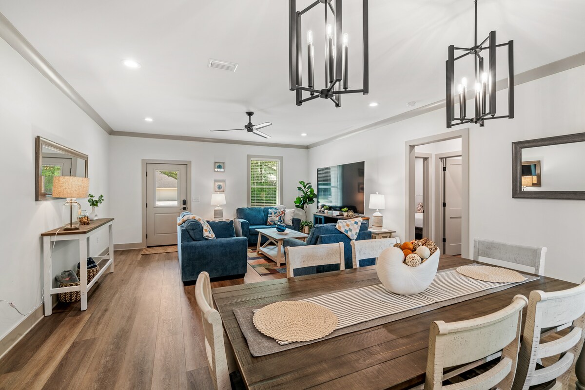 Profitez de votre séjour dans cet appartement entièrement rénové au 2e étage, à proximité des commerces et des restaurants. Nagez dans l'une des piscines, détendez-vous sur le balcon ou marchez jusqu'à la baie pour profiter des magnifiques couchers de soleil. Situé à Daphne, AL à 1,5 miles de l'I-10, en bordure de l'autoroute 98. À 10 miles de Mobile et à seulement 35 miles de la plage de Gulf Shores. Cet élégant appartement dispose d'un lit king size dans la chambre, d'une salle de bain Jack-and-Jill, d'un espace bureau/bureau dédié et de téléviseurs intelligents dans le séjour et la chambre.