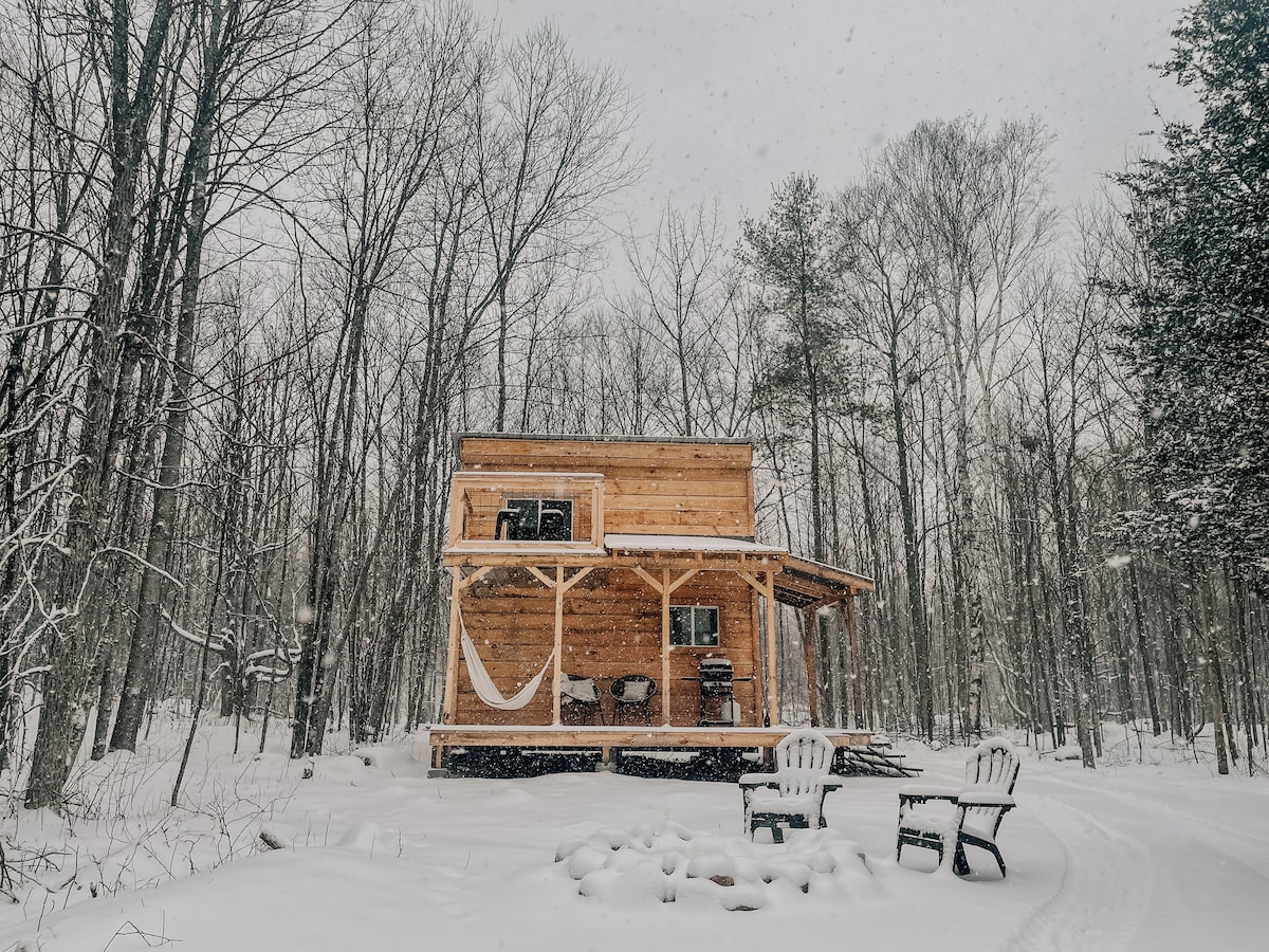 Au sommet d'une crête d'érables à sucre se trouve une cabane de 400 pieds carrés située sur un beau morceau du Bouclier canadien. Le chalet est à aire ouverte et est bien équipé avec un lit queen-size super confortable, un poêle à bois et une cuisine hors réseau, un couchage supplémentaire est sur un canapé-lit. C'est le meilleur du glamping ! La cabane est située à l'arrière de notre propriété de 20 acres avec des sentiers et de la faune à explorer. ***Veuillez noter que vous devrez marcher environ 200 mètres d'un chalet à l'autre.