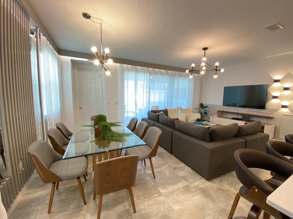 Welcome to your stylish, themed vacation home in one of the most popular resort communities in the Four Corners/Championsgate area just 15 minutes away from Disney World and close to other local theme parks. The home is crafted with love for your enjoyment & comfort. This beautiful townhome has 3 bedrooms, 2.5 bathrooms, all new furniture, and super fast 1 Gbps internet speed. You will have free access to a large beach-entry pool, kids water park, beach volleyball, mini-golf, arcade, and gym.