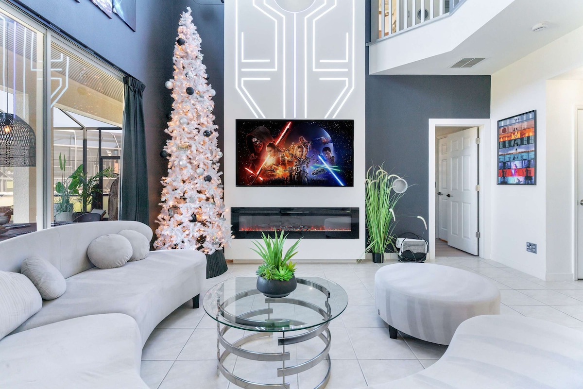 The perfect balance of STYLISH DESIGN, LUXURIOUS COMFORT, & ENDLESS ENTERTAINMENT in the stunning 3.5 square mile Reunion Resort. You will have your own private pool, spa, movie theater - game room, 3 master suites, 3 incredible themed bedrooms (MARVEL, FROZEN II, NASA) for kids or adults, the latest Xbox Series X game station, a 2500 ft2 pool deck overlooking a beautiful forest and pond, fire pit, & billiards table, minutes to Disney.