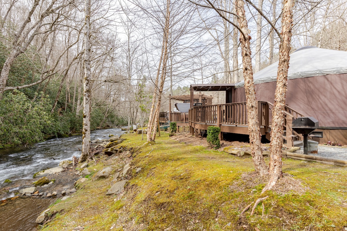Yourte à quelques pas d’une cascade • Vue sur Pisgah, douche à effet de pluie