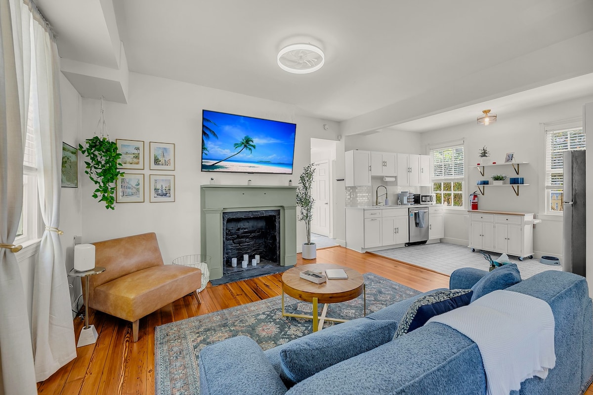 ✨ Bienvenue à Azaleas on Spring – Suite C ! 🌺 Les équipements notables comprennent : Terrasse privée🌿 isolée À 📍 2 pâtés de maisons de King St : promenade jusqu'aux meilleurs restaurants, boutiques et animations nocturnes de Charleston 🛏️ 2 chambres avec lit King Size + 2 salles de bain attenantes Stationnement 🚙 sur place pour 2 véhicules 😴 Matelas confortables 📺 Téléviseurs connectés : streaming inclus ! 🛜 WiFi haut débit + bureau 🫧 Lave-linge/sèche-linge 🍳 Cuisine entièrement équipée Café ☕️ local fourni Outils 🚿 pour cheveux dans les salles de bain 🎶 Record Player + Game Console