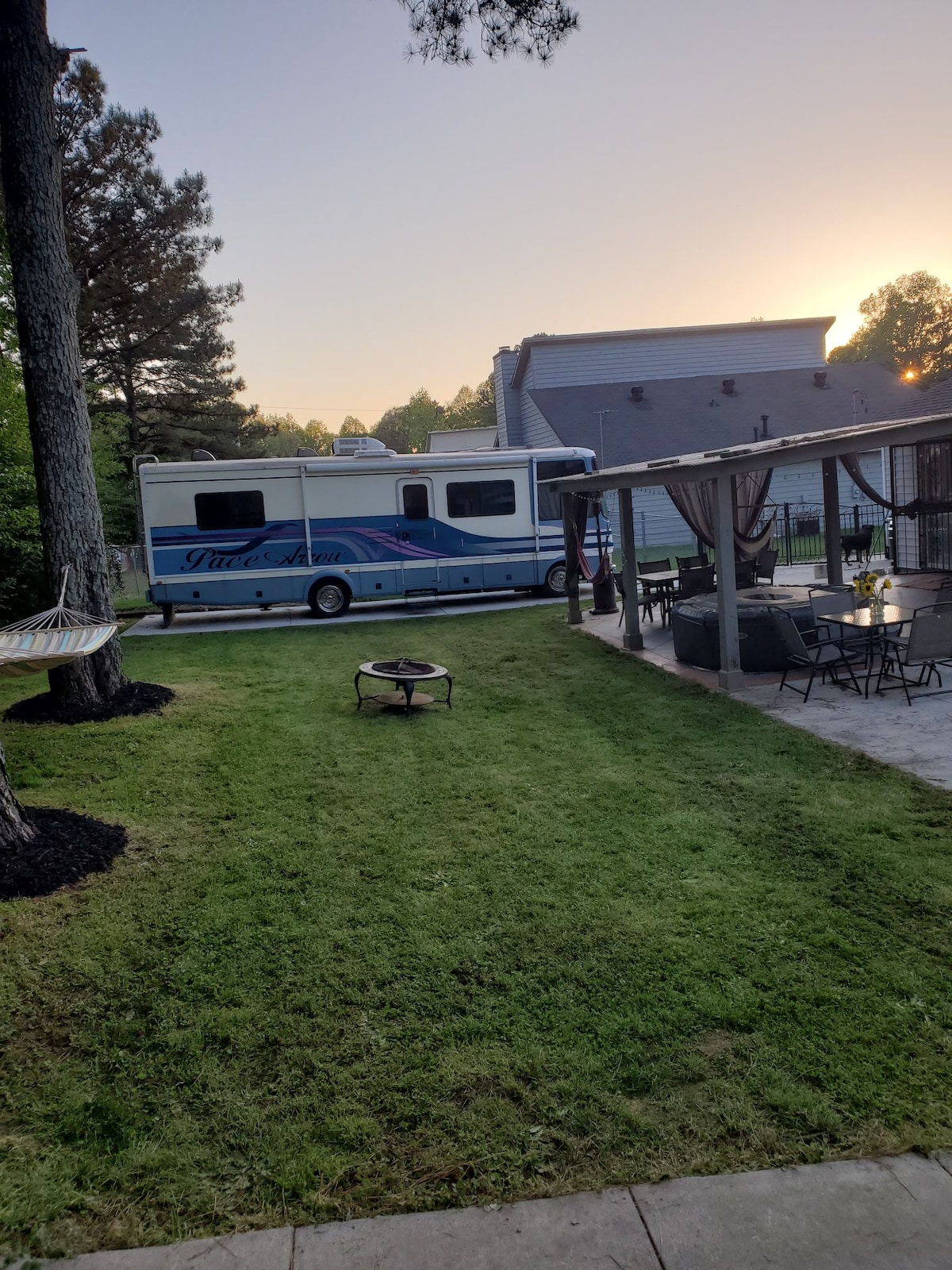 Bienvenue dans notre confortable village de glamping, où vous séjournerez dans ce charmant glamper de 30 pieds nommé « Harmony ». Alors préparez-vous à emballer vos sacs de glamping, car la paisible et sereine Harmony vous attend, pour vous offrir une chambre privée avec matelas queen-size, canapé-lit supplémentaire, deux fauteuils inclinables, deux téléviseurs, wifi, cuisine complète et salle à manger et salle de bain complète. C'est l'endroit idéal pour une escapade romantique ou un voyage amusant avec quelques amis. À l'extérieur, profitez du hamac, du foyer et des jeux.