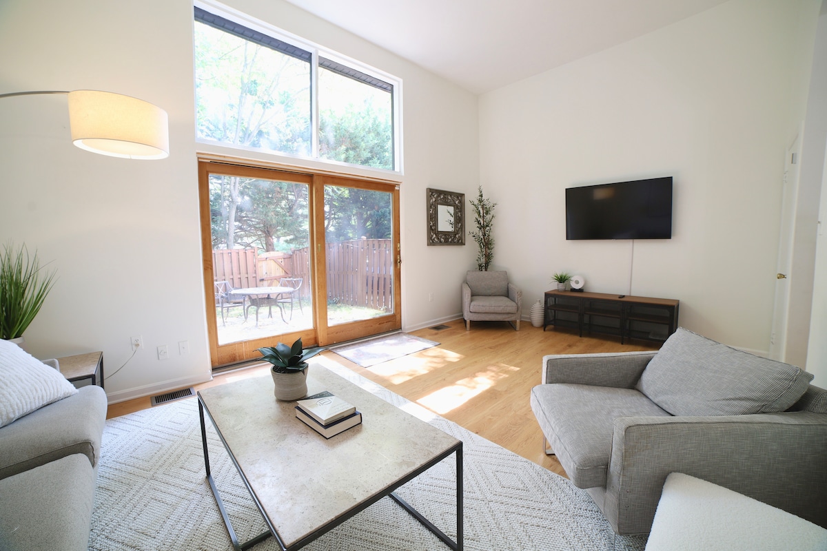Bienvenue dans une maison élégante et confortable loin de chez vous dans le premier quartier du RIO Washingtonian Center de Gaithersburg ! L'unité allie confort, commodité et une touche de luxe, parfait pour les familles, les voyageurs d'affaires ou les escapades. Suburbia DC, adapté aux navetteurs. Cuisine entièrement équipée. Salon avec canapés inclinables, smart TV et WiFi. Lits de taille normale et salles de bain complètes. Rendez-vous au bord du lac DE RIO, au centre-ville de Crown. Près du métro Shady Grove, 1-270 et MD 200(ICC).