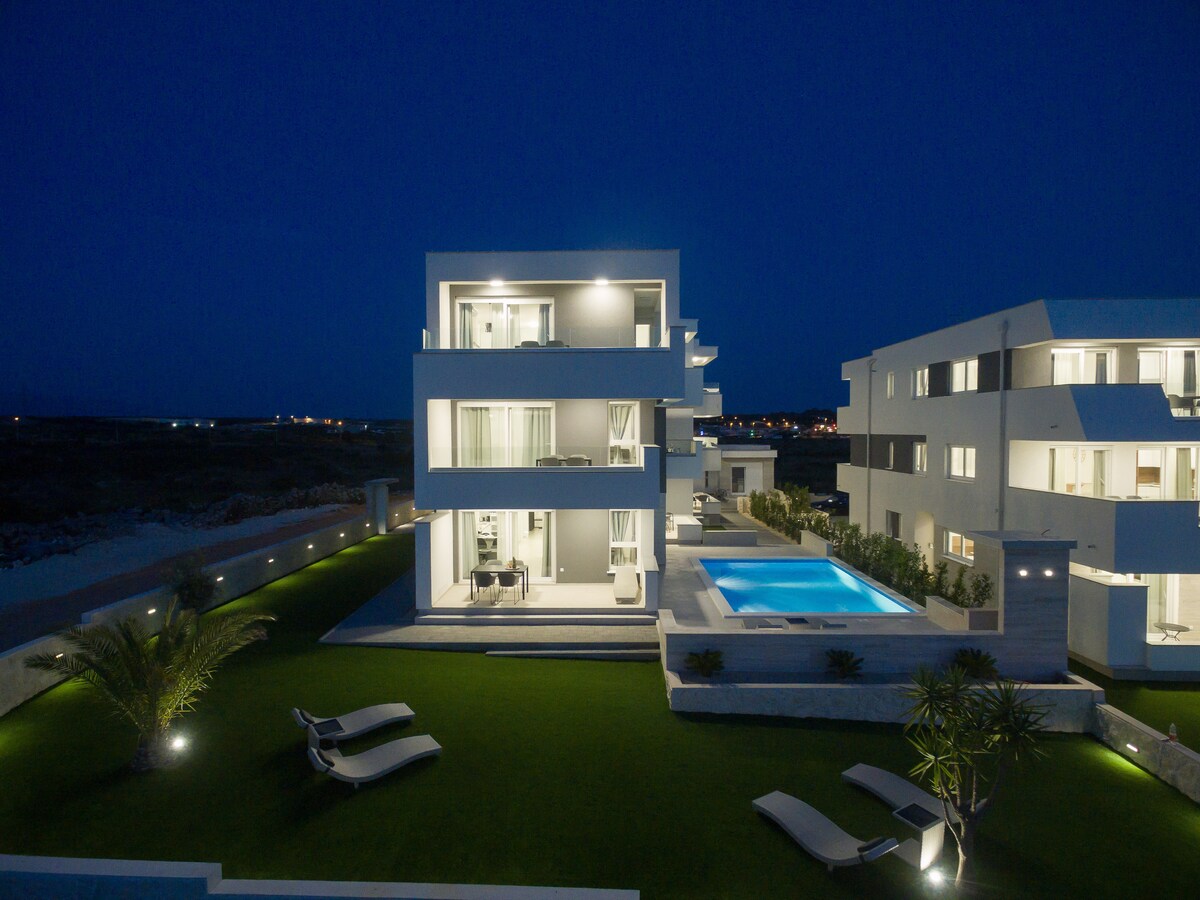 Villa élégante moderne toute neuve située dans un quartier calme et exclusif de Novalja. Un mélange parfait de luxe, d'intimité et d'emplacement idéal. La villa dispose de 4 chambres, chacune avec une salle de bain privée et un balcon. Spacieux séjour avec cuisine et salle de bain supplémentaire. Cuisine extérieure couverte avec barbecue, coin repas, piscine privée, parking privé pour 2-3 voitures. À seulement 150 m de la plage et à 200 m du centre-ville. Entouré de restaurants, bars, boutiques et à seulement 150 m de l'arrêt de bus pour la plage de Zrće.