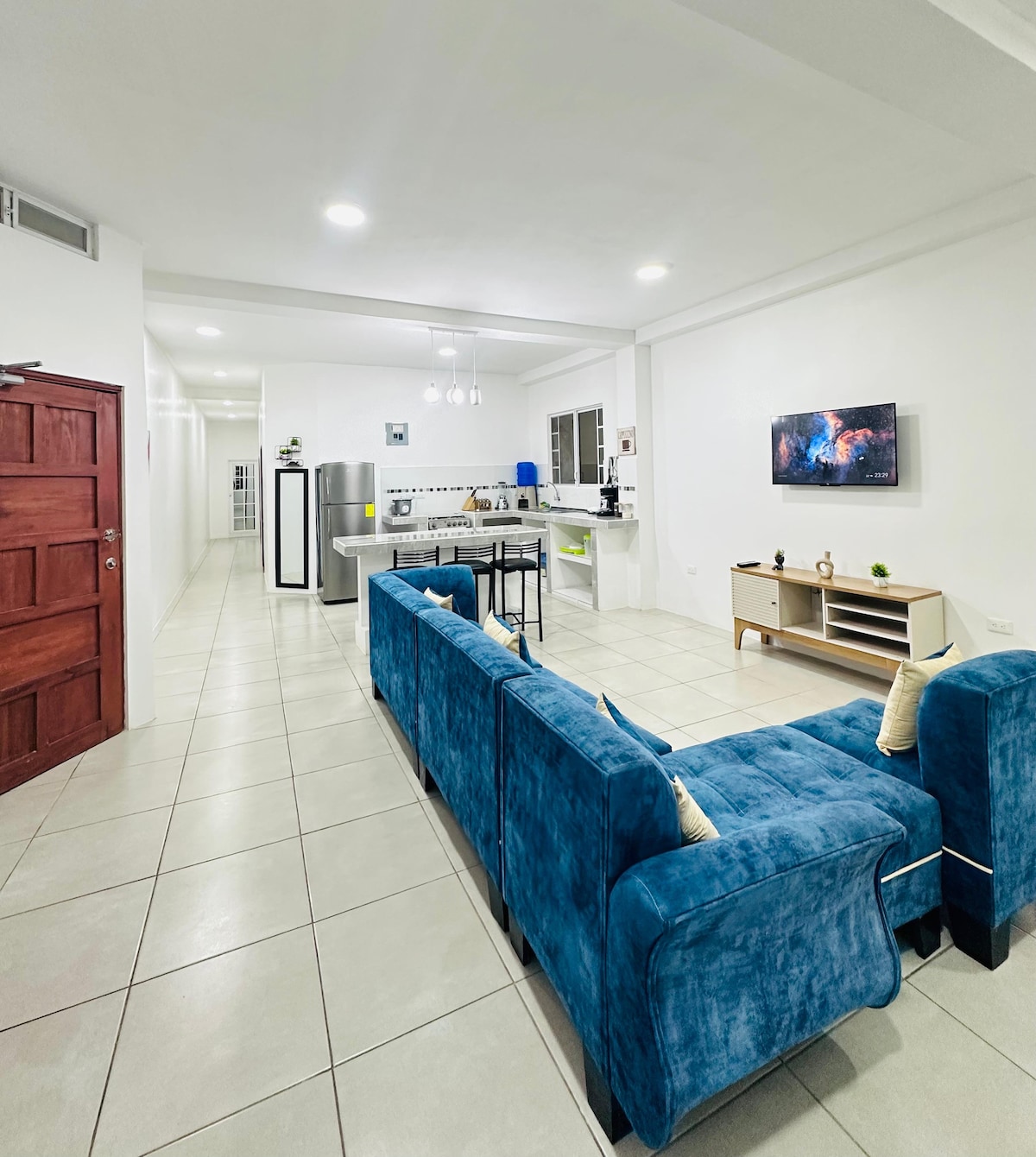 El departamento está completamente equipado con una cocina funcional, un comedor, una cómoda sala con televisor de 32'' que incluye cable, internet y Netflix, habitaciones adaptables con aire acondicionado grande, ducha electrica y todas las comodidades necesarias para una estancia agradable y placentera. Mencionar que cuando reservas con nosotros todo es privado.