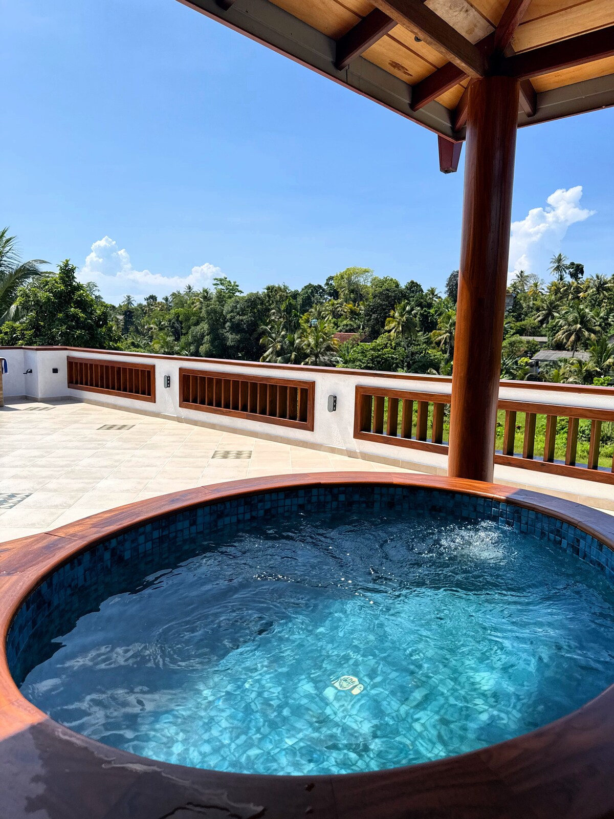 Это уникальное жилье отличается собственным стилем. Джакузи на крыше с видом на шикарные поля и закаты Шри-Ланки 🌅 Обеденная зона на крыше и зона для отдыха или работы. Отдельная кухня от комнаты , а также открытый душ около джакузи.