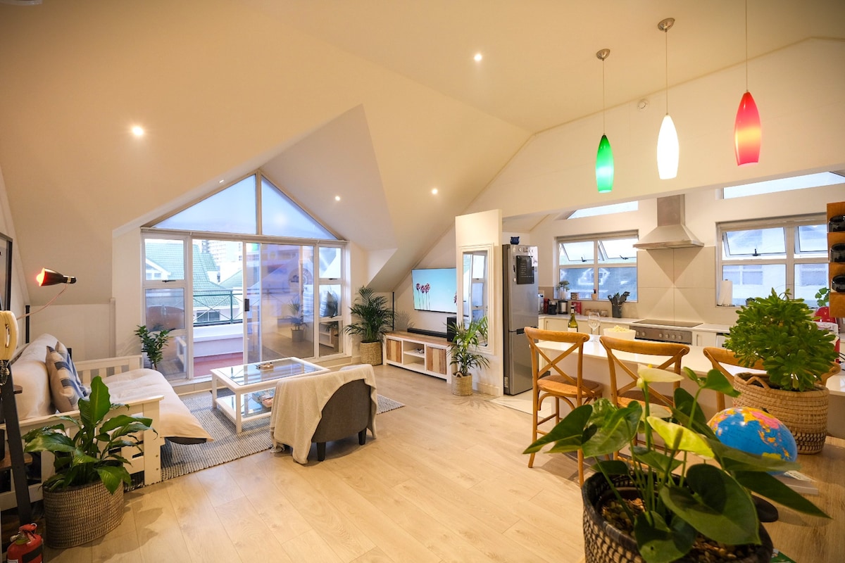 Bienvenue au Greenhouse Loft, un charmant appartement loft d'une chambre niché au cœur de Gardens, à deux pas de la rue animée de Kloof Street. Avec une vue imprenable sur la montagne de la Table, cet appartement loft offre une oasis de tranquillité au cœur de la vie animée de la ville du Cap. Parfait pour les nomades numériques et les travailleurs à distance, le Greenhouse Loft offre un espace de travail idéal avec une connexion Wi-Fi fiable. Vous aurez un accès exclusif à un balcon privé. ONDULEUR DE SECOURS EN CAS DE DÉLÉSTAGE DE CHARGE