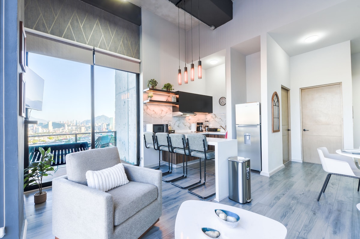 ✨ Découvrez Monterrey vue d'en haut 🌆 Détendez-vous dans notre appartement moderne de 2 chambres/2 salles de bain à San Pedro avec une vue panoramique imprenable. Deux lits Queen Size, 2 salles de bain complètes, cuisine entièrement équipée, climatisation, Wi-Fi rapide, lave-linge, parking et sécurité 24h/24 et 7j/7. Parfait pour les voyages d'affaires, médicaux ou de loisirs : à quelques minutes des meilleurs hôpitaux, du Showcenter, des centres commerciaux et des meilleurs restaurants. Idéal pour des séjours courts ou longs, alliant le confort de la maison à l'expérience de boutique que seul San Pedro peut offrir.