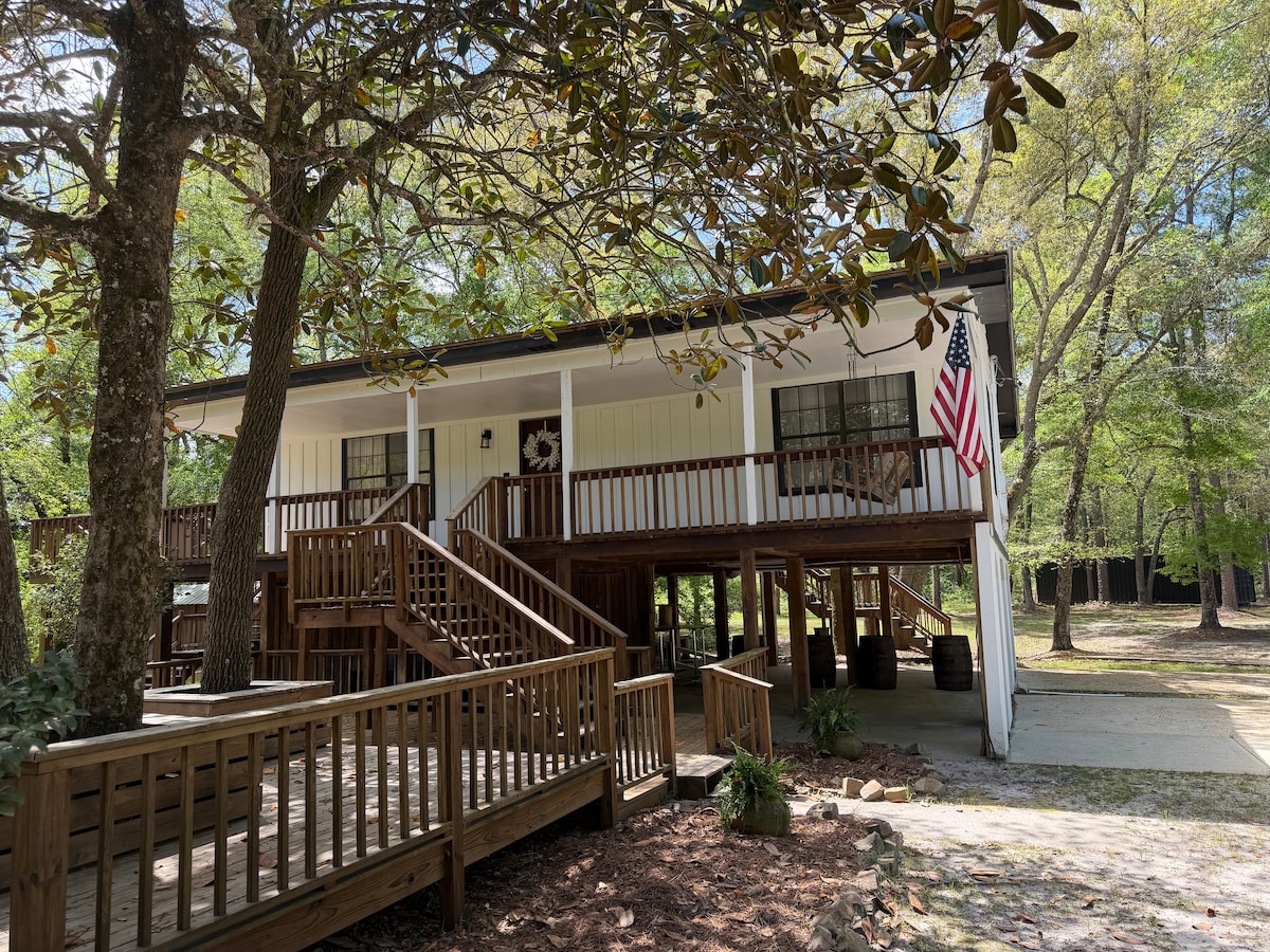 The Creekside Cabin is a little slice of heaven tucked away in South Mississippi just 10 minutes from Downtown Lucedale and 20 minutes to Mobile, AL. If you are looking for a retreat from the busyness of life this space was designed for you. The cabin is freshly renovated and situated on Brushy Creek with peaceful porches sure to be enjoyed by all. If you are interested in weekend stays please private message us as the property is used as an event venue most weekends.