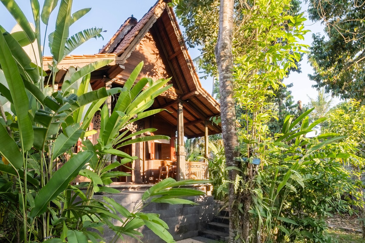 Une maison privée de 3 chambres nouvellement construite pour les chasseurs d'un caractère indonésien authentique et un sommeil confortable. Cette maison de 150 ans en bois massif repensée est pleine de caractéristiques attrayantes pour les yeux. Situé dans un quartier calme de cul-de-sac au sommet d'un canyon. Offrant beaucoup de lumière naturelle grâce aux portes vitrées et aux fenêtres, notre intérieur moderne est lumineux et sec. La longue piscine et la terrasse de yoga sont un bonus. Un endroit parfait pour le lever du soleil, le mont Agung et l'observation des oiseaux !