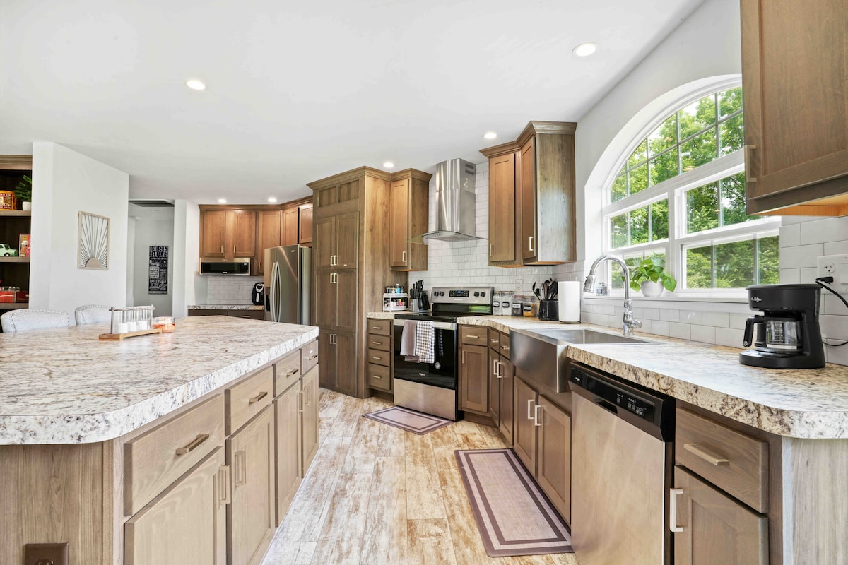 Maison de luxe flambant neuve « Indiana Love » en famille ! Garage pour 2 voitures Idéal pour les séjours en famille, les télétravailleurs, les vacances... et plus encore Nous sommes fiers d'être le numéro 1 d'Airbnb dans tout le Tri-State. Nous voulons que tout le monde s'amuse au mieux. Nous prenons la propreté très au sérieux ! Avec plus de 2800SQ dans le quartier le plus luxueux de Gibson Country. (NOUVEAU jeu de société et cheminée dans le nouveau jardin entouré de beaux arbres pour plus d'intimité