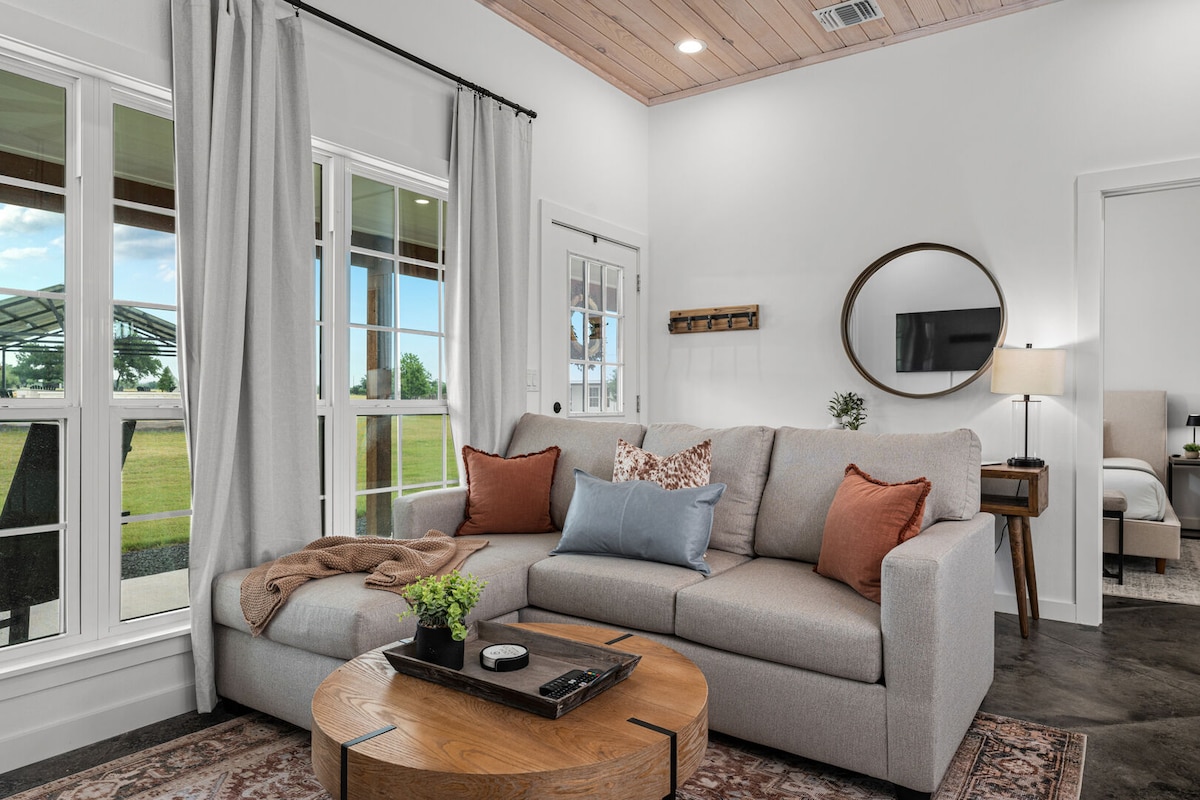 La ferme de Spotted Sheep Farms est une propriété chic du Texas, parfaite pour une escapade dans une région viticole. La propriété abrite des animaux et des animaux sauvages, notamment des alpagas, des lamas, des ânes miniatures, des moutons miniatures et bien sûr, des moutons tachetés ! Elle dispose d'un plan d'étage ouvert avec cuisine complète, chambre queen size, loft avec deux lits jumeaux, tout nouveau jacuzzi, télévision par satellite, Wi-Fi, Netflix, jeux extérieurs, foyer et grand porche pour regarder le coucher du soleil et les animaux de la ferme.