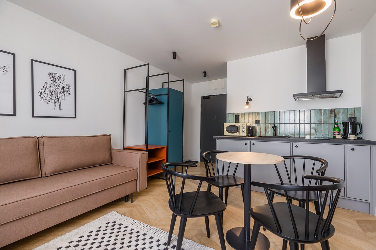 Obiekt zlokalizowany jest w nowym budynku w odległości 3km od centrum miasta. W pobliżu znajdują się liczne przystanki autobusowe oraz stacja roweru miejskiego. Część wypoczynkowa wyposażona jest w rozkładaną kanapę. Goście mają do dyspozycji łazienkę z bezprogowym prysznicem, garderobę oraz kuchnię z piekarnikiem i zmywarką a także umeblowany taras. Pościel, ręczniki i podstawowy zestaw kosmetyków są zapewnione. W cenie zagwarantowane jest miejsce postojowe w garażu podziemnym.