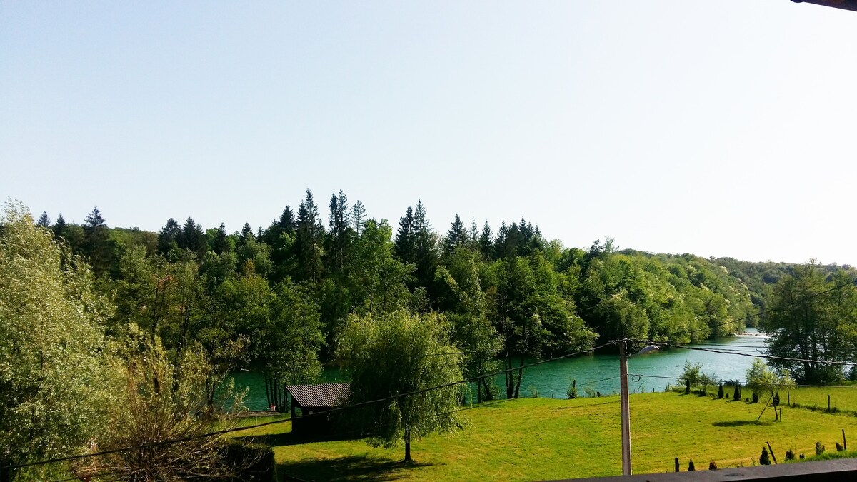Bienvenue à la rivière Mrežnica, un endroit où la nature et la détente vont de pair ! Vous cherchez un coin tranquille dans la nature, avec le son de la rivière, et proche de tout ce dont vous avez besoin ? Vous êtes au bon endroit ! Notre suite moderne et confortable est juste à côté de la rivière Mrežnica. La Mrežnica, d'une limpidité cristalline, est idéale pour se reposer, nager, faire du vélo ou profiter de la nature. Juste à côté de la piscine, il y a une aire de jeu pour enfants, un terrain de basket et une promenade le long de la Mrežnica.