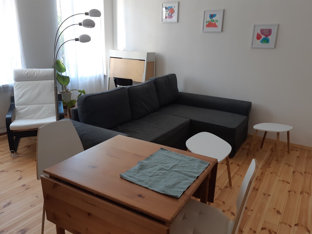 Wir bieten eine gemütliche vollmöblierte Ferienwohnung. Auf 45 qm befinden sich ein Badezimmer mit einer Wanne, eine gut ausgestattete Küche, ein kleines ruhiges Schlafzimmer mit Doppelbett (160x200) sowie ein gemütliches Wohnzimmer mit ausziehbarer Schlafcouch (140x200) und gemütlicher Essecke.