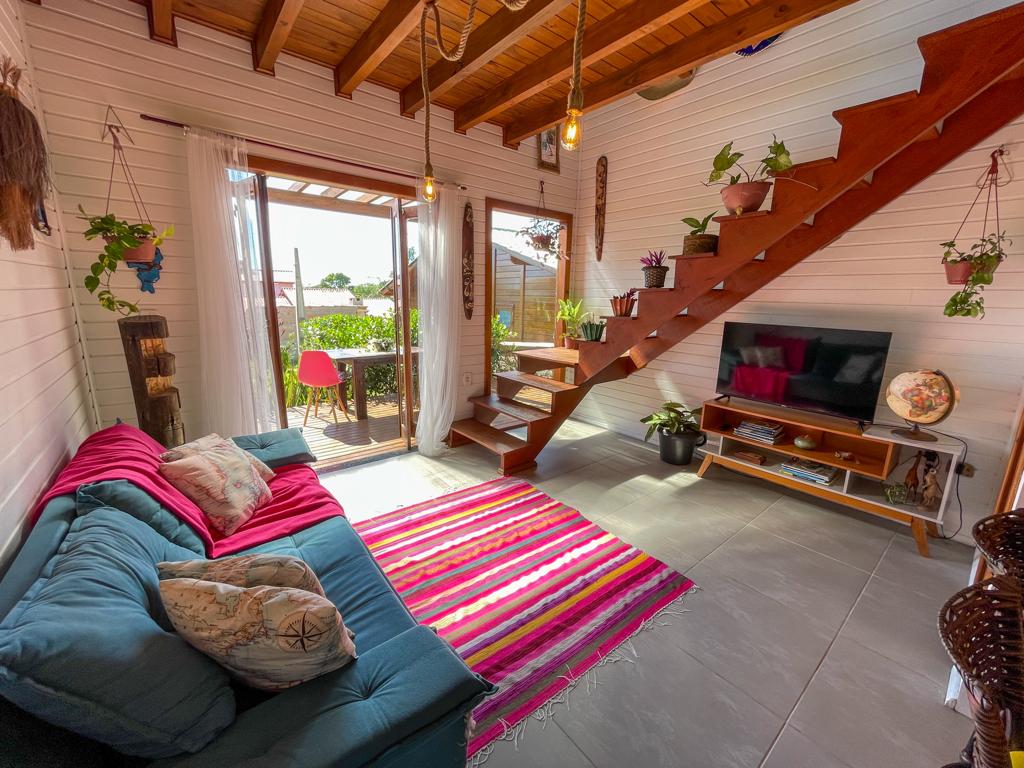 Grande maison à 400 m de la plage et à 100 m du centre. Capacité maximale pour 6 personnes. Accueillante, confortable et magique. Excellente vue sur la lagune d'Ibiraquera sur le pont. Belvédère au point culminant de la colline avec vue sur la mer. Chambre principale en suite avec lit double, 1 chambre avec 5 lits simples et salle de bains extérieure. Mezzanine avec 1 lit double. Séjour et cuisine. Douche extérieure et barbecue. Terrasse extérieure. Parking privé pour deux voitures. Bon Wi-Fi et sécurisé.