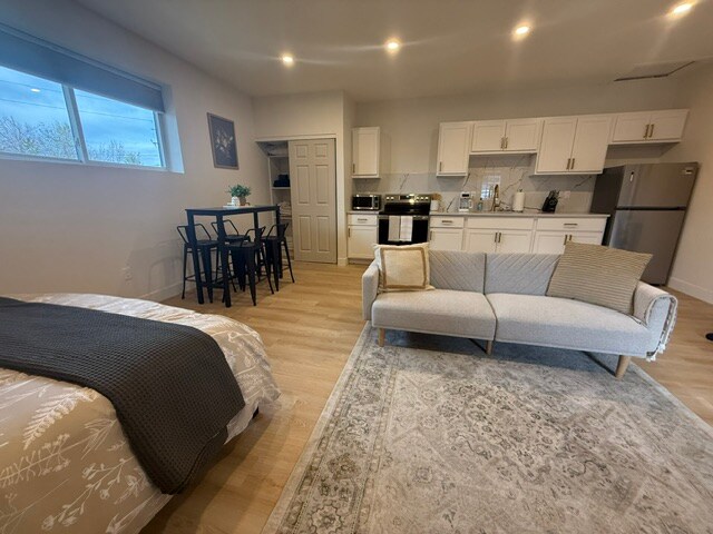 STR 23-037 Retournez dans votre propre suite parentale, avec une terrasse privée confortable et une cour latérale séparée du reste de la maison. Allez et venez à votre guise grâce à notre système d'entrée à clavier qui vous permet une entrée sans contact jour et nuit. Tant de choses à faire à distance de route de cette suite confortable : faites une randonnée ou une balade à vélo dans les montagnes, assistez à un spectacle à Red Rocks ou visitez Denver. Allez déguster un barbecue ou une bière artisanale CO en bas de la rue. C'est l'endroit idéal pour votre expérience au Colorado.