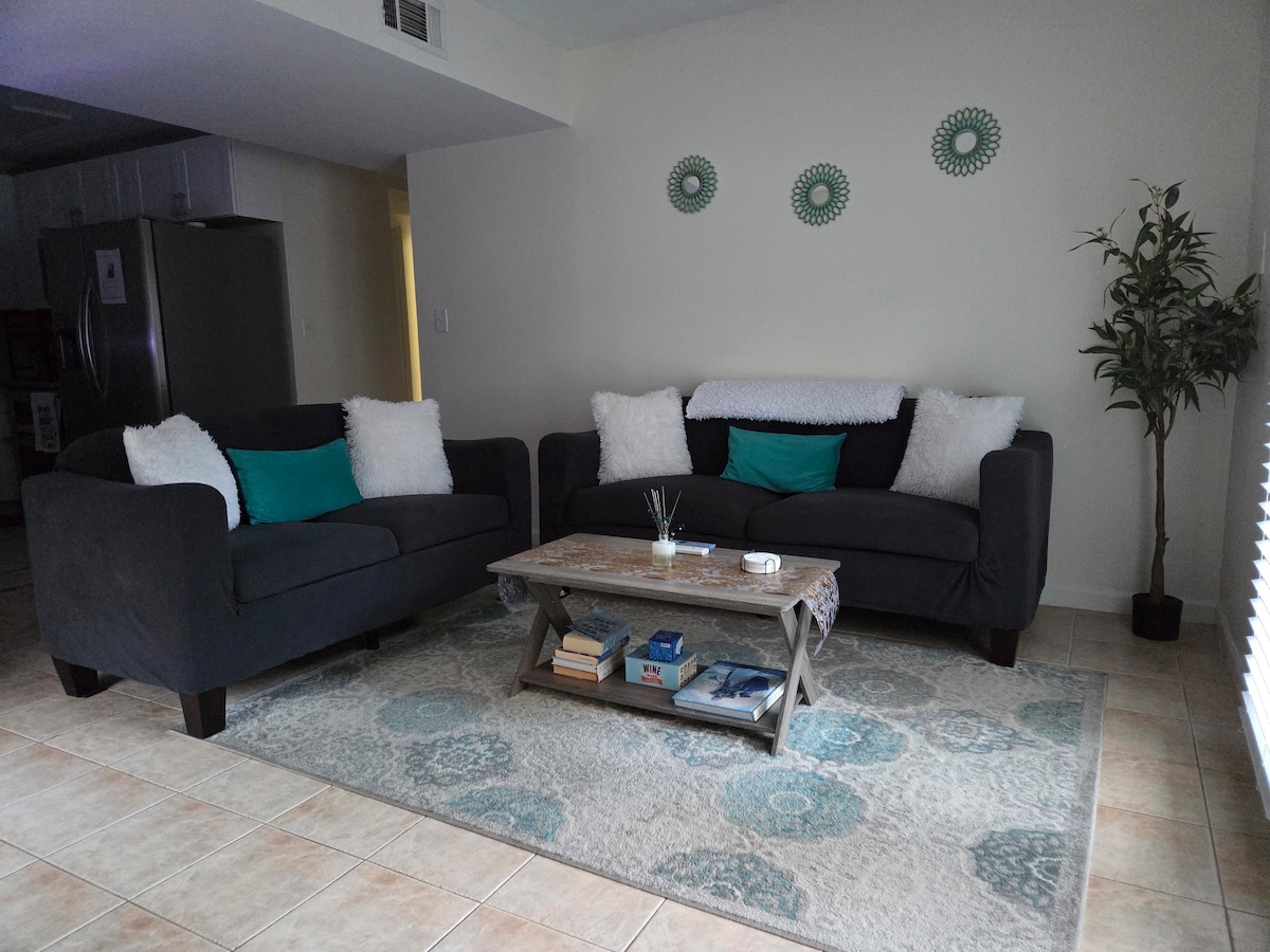 Private first floor suite in a house in the Oakhurst neighborhood of Decatur with a full kitchen, cozy queen bedroom, and a pull out queen sofa bed. Huge windows provide natural light or enjoy your coffee on the front porch. • 5 min. walk to Oakhurst Village with restaurants & more • 10 min. walk to Agnes Scott College • 24 min. walk to Decatur Square & Marta • Separate entrance with no door to the attached house • Separate HVAC with no shared air ducts with the house