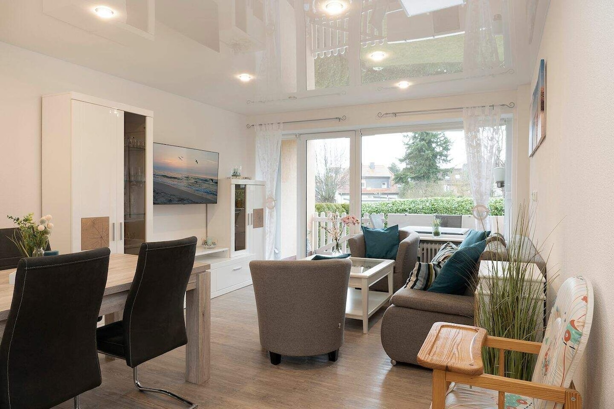 Appartement confortable dans un endroit calme, à environ 5 minutes à pied de la plage principale/promenade de Dahme. L'appartement dispose d'une grande terrasse sur le toit avec une chaise de plage. En outre, nous avons aménagé une petite aire de jeux pour les (petits) enfants derrière la maison. Les chiens peuvent être amenés, veuillez le préciser lors de la réservation. Le wifi est bien sûr disponible ! Merci de ne fumer qu'à l'extérieur, sur la terrasse !