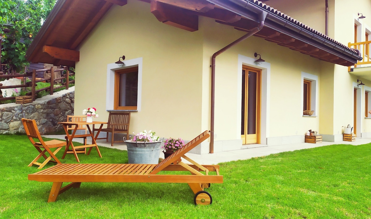 La maison est née de la rénovation d'une ancienne grange avec un cerisier dans le jardin .....aujourd'hui elle est devenue la Maison de Vacances il Ciliegio... Immergée dans un grand jardin, elle bénéficie d'une vue magnifique sur nos montagnes. Pendant les mois d’hiver, le soleil ne réchauffera pas vos journées mais la chaleur du feu de cheminée rendra votre séjour unique. La maison de vacances « Il Ciliegio » est située dans une zone stratégique aux portes du parc national du Grand Paradis.