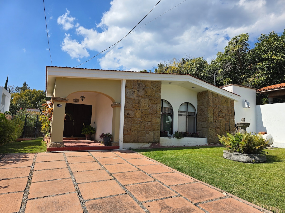 Casa tipo Hacienda Con chimenea, un área de jardín muy amplio, donde sentiras La Paz de de la naturaleza, y podrás disfrutar de tardes con tus hijos y mascotas o carne asada con amigos. y los niños pueden jugar y correr También contamos con alberca de 5 x4 y camastros WiFi, balcón con hamaca para disfrutar la vista Ideal para desconectarte de la ciudad. si estás cansado o estresado es el lugar indicado Estamos cerca de la barranca y zoológico de Guadalajara