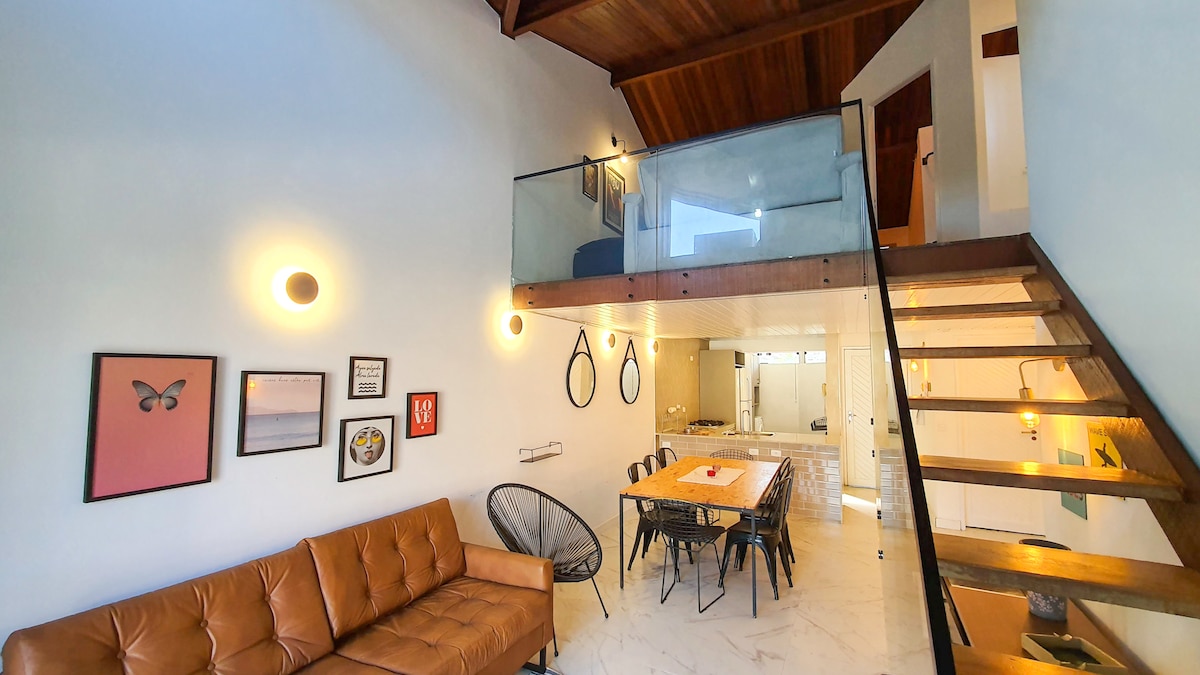 À 7 minutes à pied de la plage de Camburizinho/Camburi Notre maison est très exclusive, pratiquement toute la maison a une vue sur la mer (moins la salle de bain rs), chambre avec lit queen, ventilateur de plafond et porte sur le balcon donnant sur la mer. Mezzanino avec matelas double et mur de verre avec vue sur la fenêtre et la mer ! ventilateur Maison très bien ventilée, au calme, et privée ! Cuisine avec des ustensiles, un séjour confortable avec un canapé lit et de grandes fenêtres avec un look !