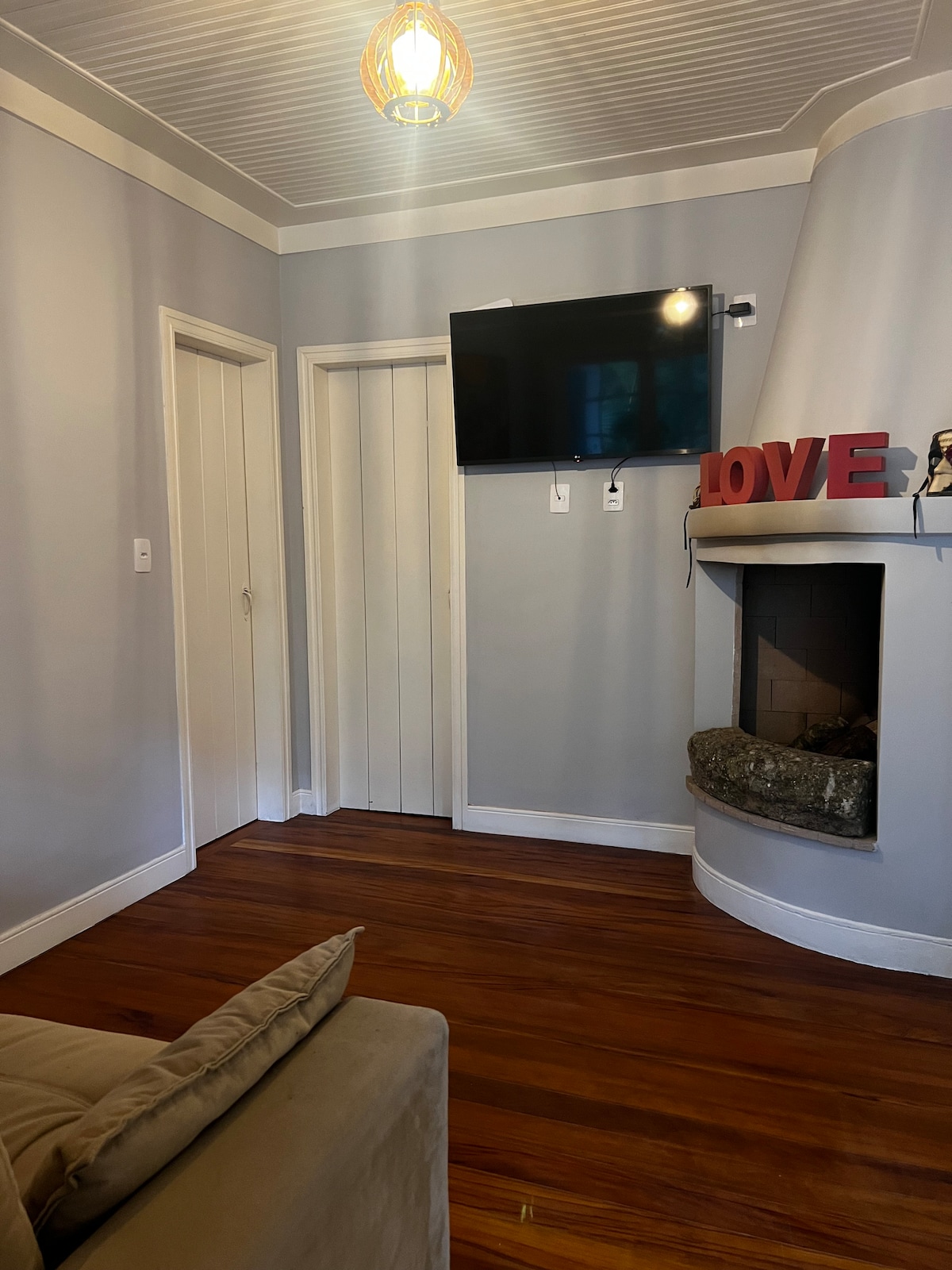 Bienvenue dans notre petite maison dans les montagnes, où le vert est la star principale ! Le balcon est une invitation à la détente, avec un hamac et des chaises confortables. Pour rendre votre séjour encore plus inoubliable, sur le côté du chalet, une terrasse avec pergola dispose d'un confortable jacuzzi double, parfait pour se détendre ! Barbecue disponible ! Dans le jardin, il y a des arbres centenaires, une symphonie d'oiseaux, beaucoup de fleurs, des jabuticabas et un étang !