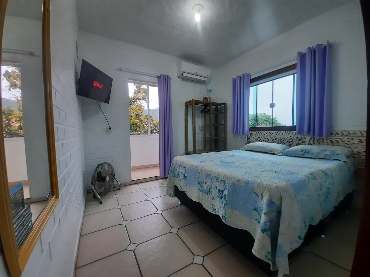 Nous sommes situés entre les plages de Guarda do Embaú et Pinheira. Nous avons un parking privé, un barbecue, des hamacs, un feu de camp, un espace vert, un potager et le wi-fi gratuit. Ici, vous êtes accueilli par les propriétaires avec beaucoup d'affection. Ici, le rythme est ralenti et la vie suit sans hâte !