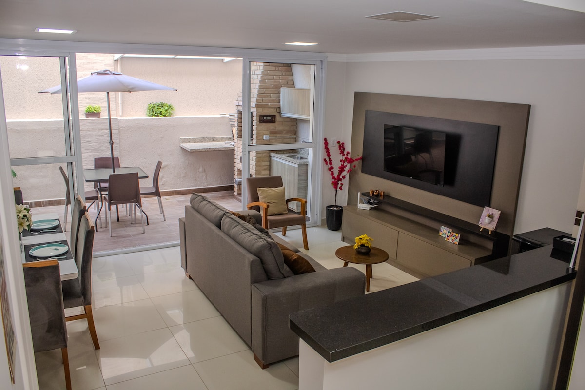 Belle maison confortable avec 3 chambres avec salle de bains, piscine privée, jardin d'hiver et table de billard. Idéal pour les familles ou les groupes, à quelques minutes de la plage de Pernambuco, à Guarujá. Parfait pour les jours de repos et de loisirs avec confort et style. Réservez maintenant et vivez cette expérience incroyable !