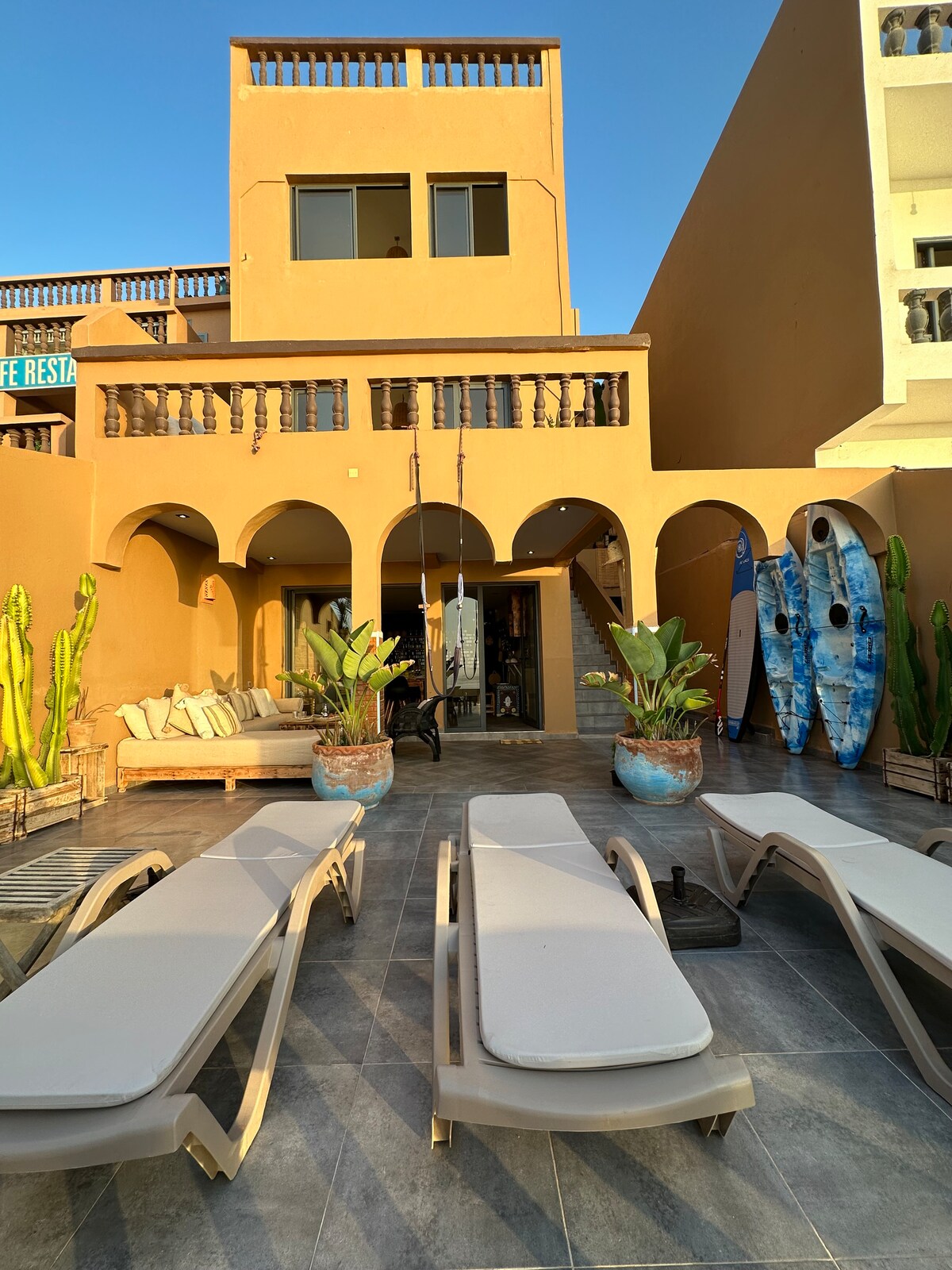 Bienvenue dans notre belle nouvelle maison de surf et notre auberge située au cœur de Mirleft : l'endroit idéal pour les surfeurs et les non-surfeurs dans le sud très spécial du Maroc. Avec des espaces communs calmes, des terrasses élégantes et des chambres doubles, à lits jumeaux ou superposés confortables, toutes avec salle de bain privée, la gamme est une oasis pour les voyageurs. Nous accueillons tout le monde, les aventuriers, les voyageurs du monde entier, les individus, les couples, les familles et les groupes. Séjournez chez nous lors de votre prochain voyage. À bientôt dans la liste !