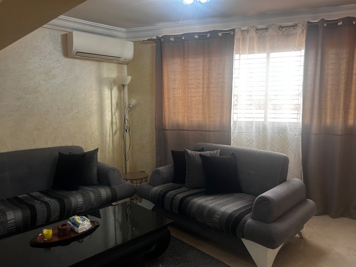 appartement, dans le meilleur quartier d'Agadir, à quelques pas de la plage et à quelques pas du centre commercial. Il y a des cafés/restaurants incroyables et propres à quelques pas de l'appartement. Vous êtes sécurisé 24h/24 et avez accès à 2 piscines. Un endroit incroyable pour vivre avec un sens incroyable de communauté. Convient uniquement aux professionnels/couples et familles/Aucun groupe d'hommes ne sera accepté.