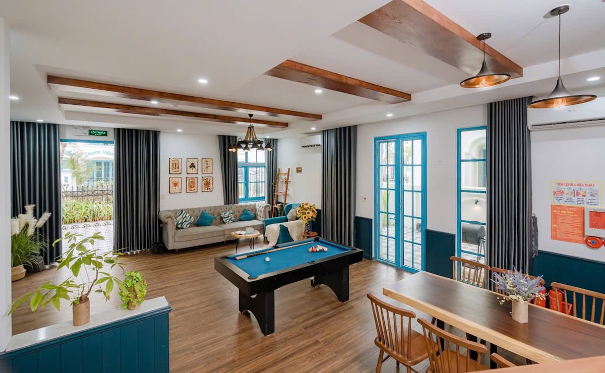 Notre villa entièrement climatisée de 6 chambres et 5,5 salles de bain est située à seulement 1 minute à pied de la plage de Bai Chay, avec un accès facile aux sites touristiques les plus visités (port de croisière international d'Halong, complexe Sunworld Halong, marché de nuit d'Ha Long,..) Nous offrons une grande intimité avec des paramètres de sommeil flexibles pour votre voyage en famille, entre amis ou en entreprise avec une touche haut de gamme et une ambiance côtière tranquille. Transport privé Croisières d'une journée à Halong. Billets pour le parc Sunworld. Services de traiteur. Itinéraires de Catba.
