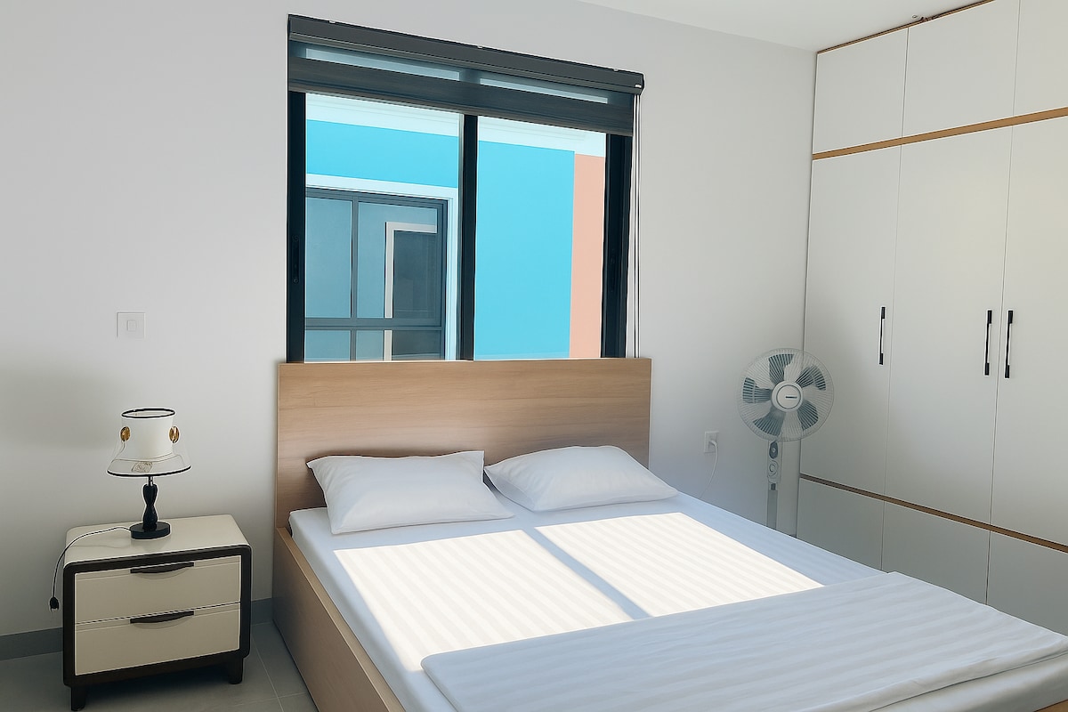 La chambre est située au 2e étage, avec une fenêtre aérée. Lit spacieux pour 2 personnes, matelas à ressorts doux, nettoyage en suite et équipements de base complets.