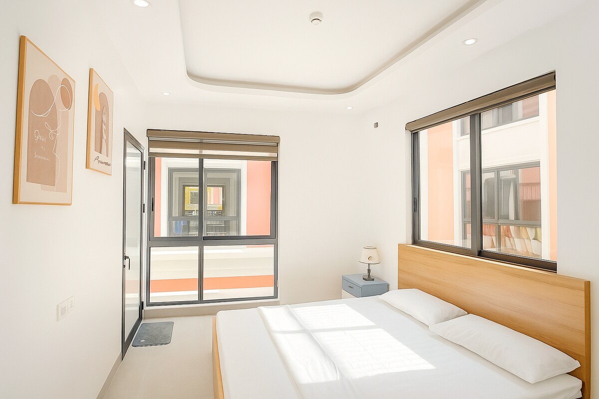Phòng Deluxe rộng 20m² trên tầng 4 của căn nhà 4 tầng; phòng tắm riêng trong phòng; có ban công rộng rãi, yên tĩnh và tầm nhìn đẹp; thích hợp cho gia đình hoặc nhóm nhỏ, KHÔNG CÓ PHÒNG BẾP