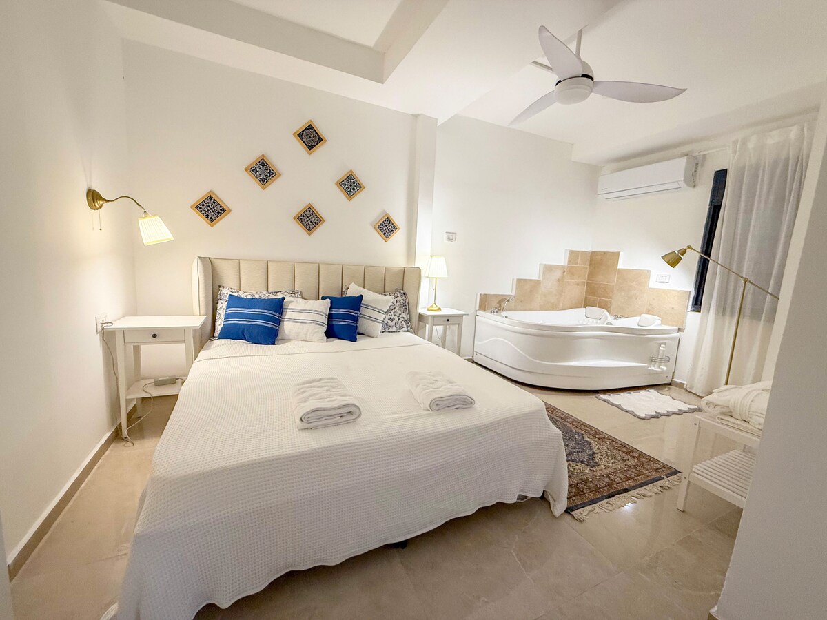 L'appartement est situé dans une rue calme juste à côté des anciens murs du vieux Akko et du phare. Vous vivrez dans une atmosphère unique avec des murs en pierre, un mobilier moderne et un jacuzzi. L'appartement dispose d'une cuisine entièrement équipée et de tout le nécessaire pour préparer les repas. Nous offrons une connexion Wi-Fi gratuite et la télévision par câble « Oui ». À distance de marche de l'appartement, il y a de nombreuses attractions, des cafés et des restaurants confortables. Il y a un grand parking municipal gratuit à 150 mètres de l'appartement.