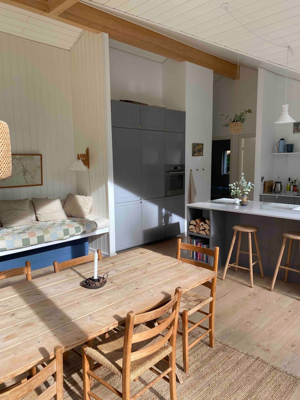 La forêt comme voisin et vue sur les champs. Le parfait havre de paix loin du bruit et de nous, à proximité de la plage et des activités. Il y a 4 chambres et un spacieux grenier. Il y a une grande salle de bain, ainsi que des toilettes accessibles de l'extérieur, avec douche extérieure associée. La cuisine est une cuisine de menuiserie avec des appareils électroménagers Miele. Plongez dans le bain sauvage et profitez d'un moment de détente dans le sauna. La maison dispose d'un total de 5 haut-parleurs sans fil. Dans le coin du jardin, il y a un foyer avec une balançoire où toute la famille peut faire des guimauves sur le feu