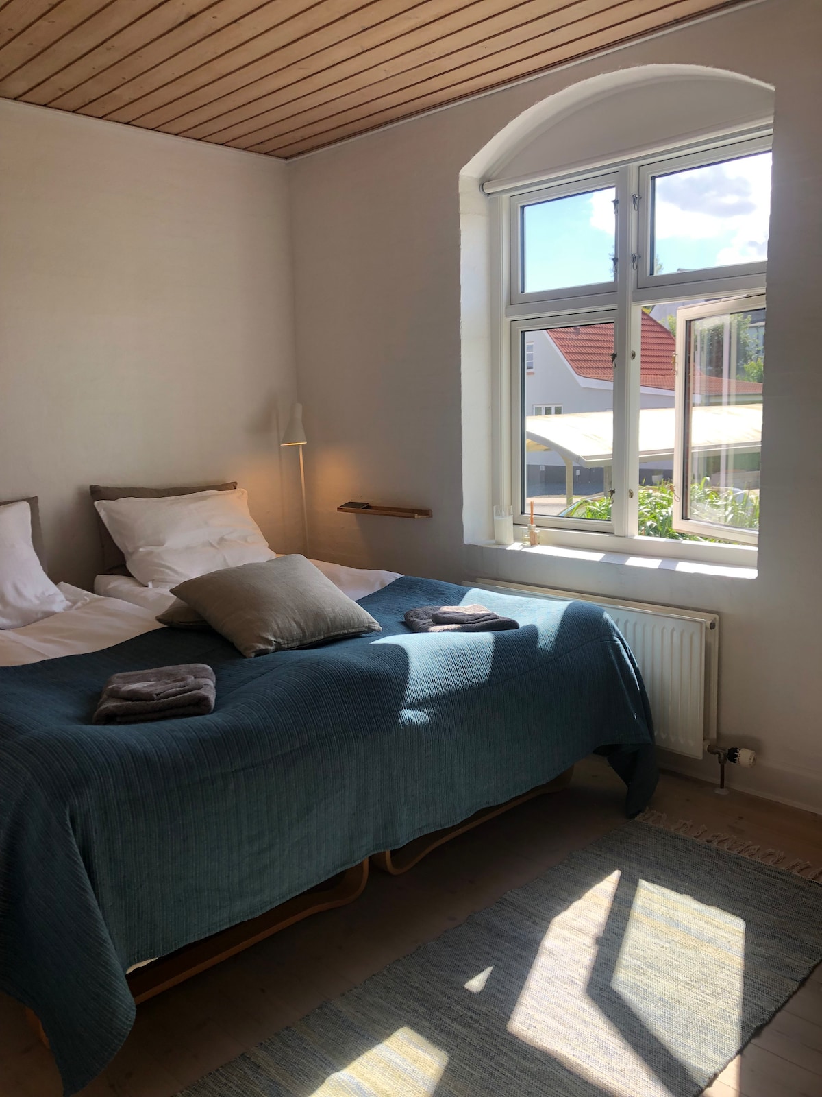 Notre appartement est situé dans un petit village calme à la campagne près de Randers. L'appartement dispose de sa propre entrée, d'une boîte à clés pour faciliter l'arrivée, d'un chargeur de voiture électrique et d'un accès gratuit à une machine à laver. À l'intérieur, il y a le hall d'entrée, une petite salle de bain avec douche, 2 chambres, une cuisine ouverte entièrement équipée et un salon avec un canapé-lit confortable de 140 cm. Notre jardin dispose d'une aire de jeux amusante pour les plus jeunes et d'une orangerie confortable que tout le monde peut apprécier. Nous vous fournissons toujours une maison propre, des serviettes et du linge de lit. Bienvenue