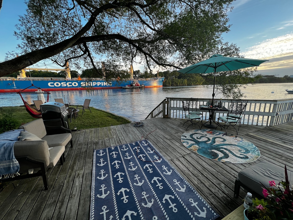 Notre chalet au bord de l'eau est une propriété unique offrant style, tranquillité et un accès à pied à Market Square de Portsmouth. Le thème est un mélange de charme de la Nouvelle-Angleterre et de modernité scandinave. Nous offrons une vue incroyable, deux terrasses, une cuisine moderne, une buanderie et un stationnement gratuit pour un véhicule. Cette propriété haut de gamme peut accueillir quatre personnes, y compris les enfants. Elle offre une escapade romantique tranquille pour le voyageur averti, et pourtant elle est à seulement dix minutes à pied de Market Square.