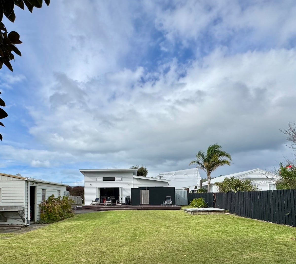 Bungalow, 2 chambres pour 4 personnes, 1 grand lit (Queen) et 2 lits simples, qualité hotel. Grande salle-de-bain avec WC séparé. Aussi une douche a l'extérieur. Après la plage, baignoire de plein air au soleil ou sous le ciel étoilé. Calme et confort au coeur de notre plantation de kiwis bios. Tout près de la plage et a prix très raisonnable. Une expérience 100% Kiwi au milieu de la campagne néo-zélandaise. Radiateurs en hiver. Fruits et légumes bio au jardin. Piscine en été a réserver.