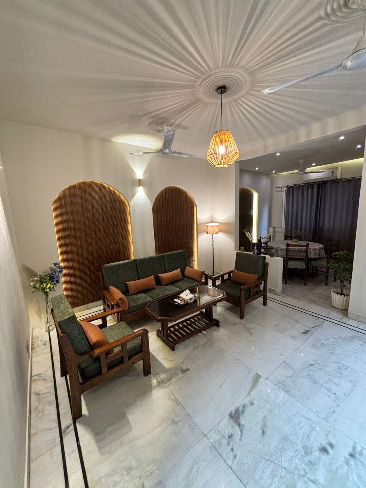 Séjournez dans notre spacieuse retraite de 2 chambres avec vue sur le parc, à 8,5 km des aéroports et à 15 min en voiture du métro. Profitez de balcons aérés, de vues sur le parc, de lits en acajou/bois, d'une cuisine entièrement équipée, d'une connexion Wi-Fi haut débit, d'une télévision connectée, d'articles de toilette gratuits et de recommandations locales. Savourez des repas faits maison, explorez le marché et les centres commerciaux à proximité et détendez-vous sur les pistes de jogging sereines. Découvrez une hospitalité haut de gamme avec une arrivée et un départ flexibles, des services de blanchisserie et des transferts aéroport en option. Réservez dès maintenant pour un séjour inoubliable à Delhi !