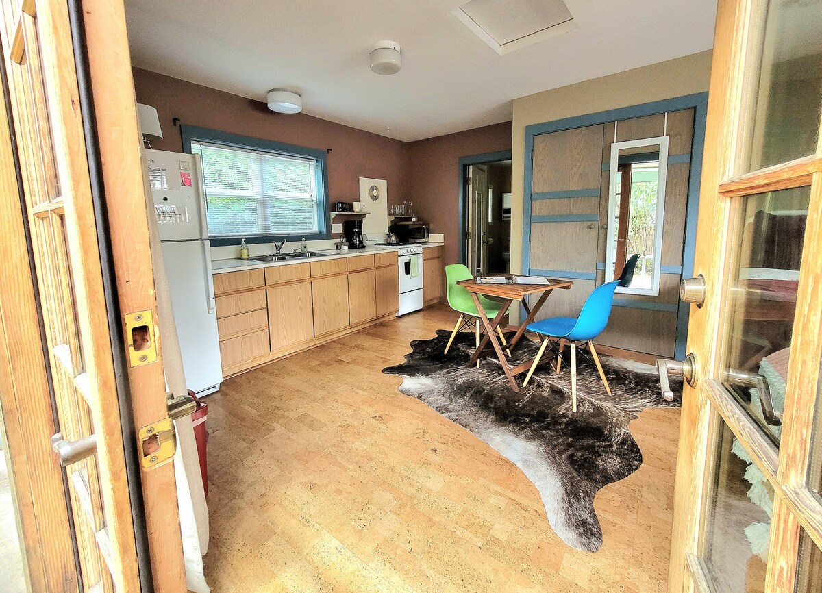 Construit comme un studio d'art contemporain, cet espace offre une abondance de lumière naturelle et un plan d'étage ouvert. Il est accessible à pied • impeccable • joliment aménagé avec des touches personnelles. Terrasse privée • ambiance accueillante • art original et un hôte 5 étoiles. Profitez d'une cuisine complète • salle de bain complète • parking privé et lit confortable. Débranchez, détendez-vous et déstressez ou partez dans n'importe quelle direction pour découvrir des activités et des attractions sans fin dans ce quartier animé de S.E. Eugene. * Parfait pour les adultes (bébés et adolescents bienvenus)